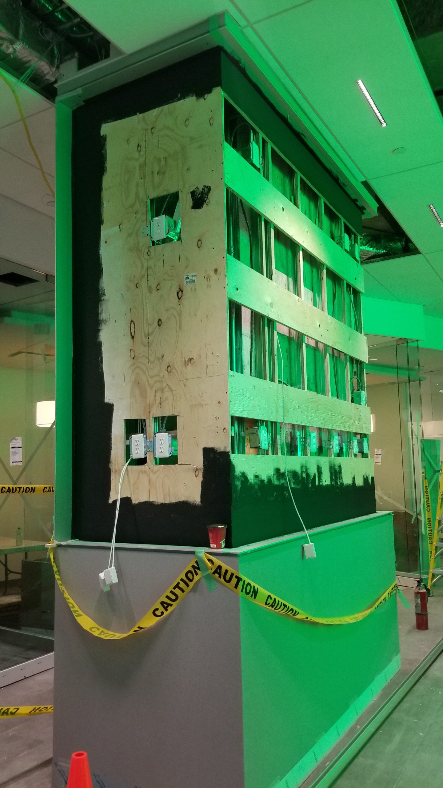 Lots of PR and happy faces. Today, my content plays nice and bright and faces Bloor street. I created deck after deck of content ideas and pitched what I recommended the playlist looks like. Animation must be subtle at this scale and making an impact will take care of itself in this environment. Here are some clips of some animations during mapping/testing of the LED during install.